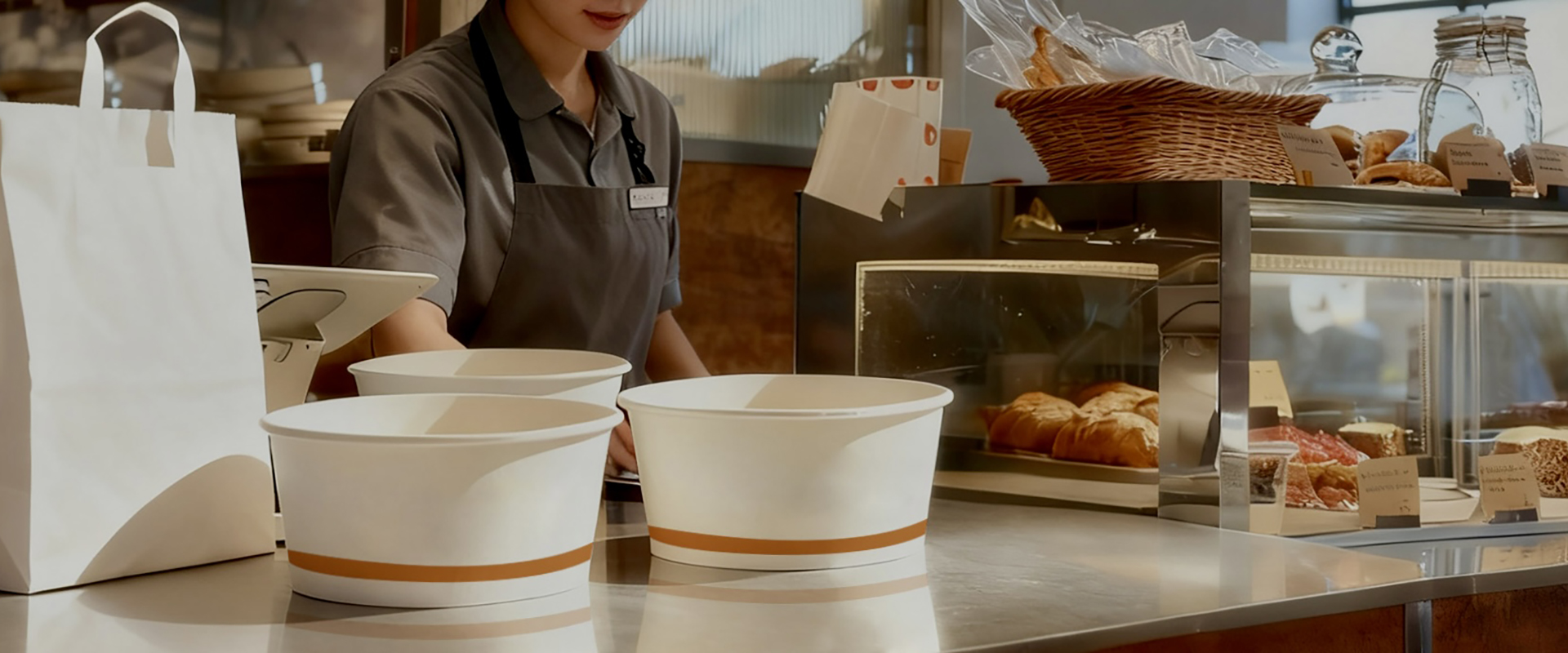 Serviço PRO na indústria de embalagens de alimentos. Hoje em dia, tanto as marcas de restauração como os consumidores preferem recipientes de papel para embalagens de take-away. Os recipie...